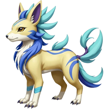 WereGarurumon-Suicune-Linoone-Meloetta-Renamon-Zangoose-fusion-hybrid-creature (full body) emoji | AI Emoji Generator