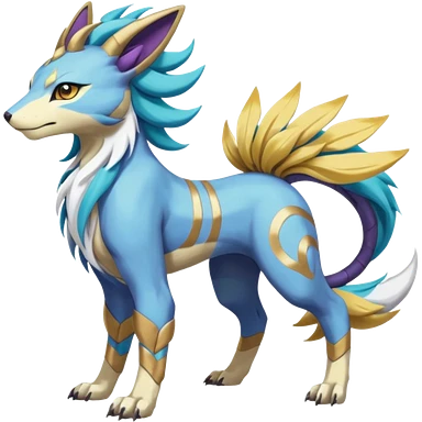 Colorful Skilled Adept Graceful Asian Painted WereGarurumon-Suicune-Linoone-Meloetta-Renamon-fusion-hybrid-creature (full body) emoji