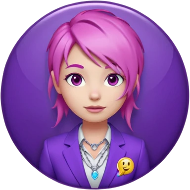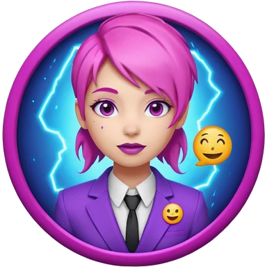 Cute 3D emoji-style girl sexy character with pink hair and purple eyes, inside a circular badge. No hands, no pose. Clean purple suit with a glowing neon-blue ‘C’ logo on the chest, small lightning accent. Smooth Apple-style lighting, friendly expression emoji