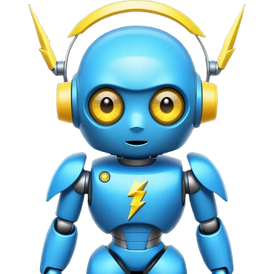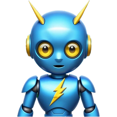 Small round cyber character with a glowing neon-blue C on its chest, big cute robot eyes, and a tiny yellow lightning bolt on its head emoji