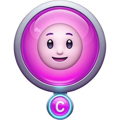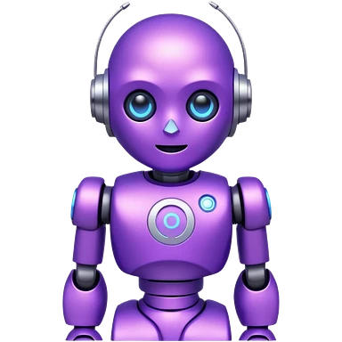 Cute mini robot character, purple body, white C symbol on the chest, soft neon glow, simple face with two bright blue eyes emoji