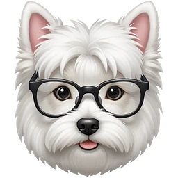 silver, short, wavy-haired with loose curls, smiling pretty lady holding a westie dog emoji