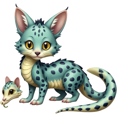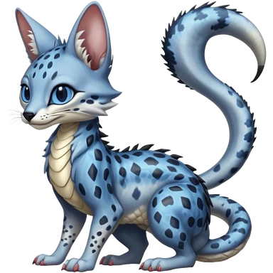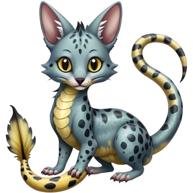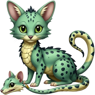 Realistic cute Flurry furry scary slimy oily glossy wet gloomy dusky scaly sergal-serval-possum-sphynx-Koi-sergal-fusion-animal-hybrid-creature with a snake-tail emoji