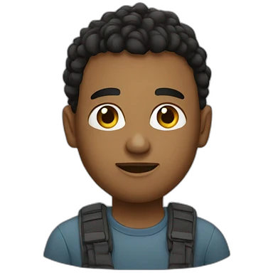 a boy with a black curly hair weaering a mask and wearing a black shirt emoji