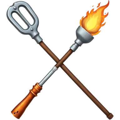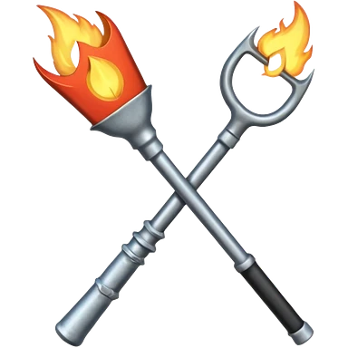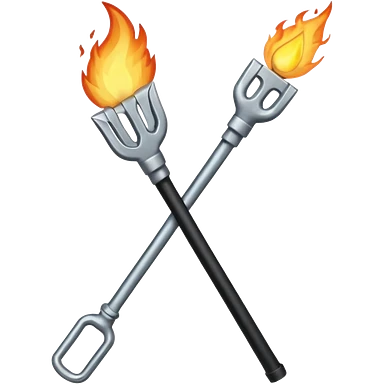 a three pronged pitchfork and a torch crossing each other to make an x emoji