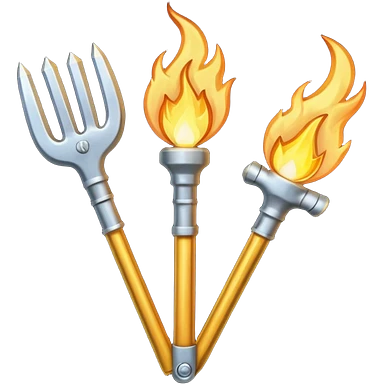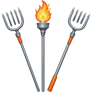 a three pronged pitchfork and a torch emoji