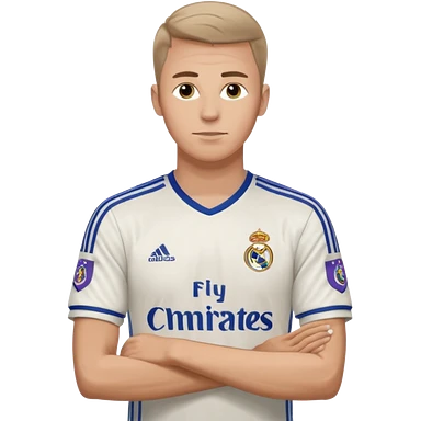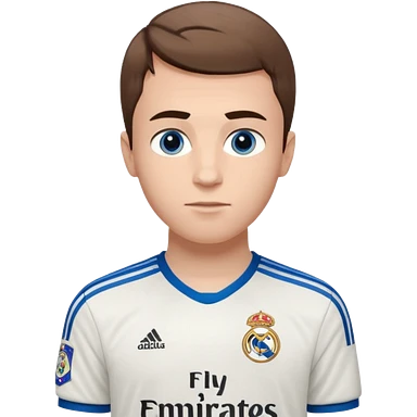 White male wearing Adidas Real Madrid jersey with Champions logo on sleeve emoji