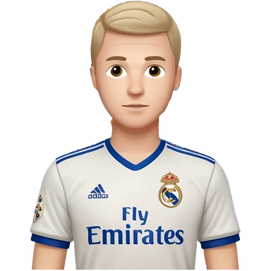 White male wearing Adidas Real Madrid jersey with Champions logo on sleeve and Fly Emirates on chest emoji