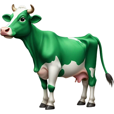 Green whatsapp themed cow shown sideways with the image being really stretched and the cow looking up emoji