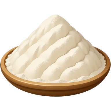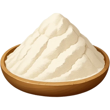 wheat flour, mound or scatter, fine pale white powder, uneven edges, dry powdery surface, subtle texture, no bowl, packaging, tools, or faces, clean 3D, soft shadows, transparent background, emoji scale emoji