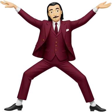 the word "DALI" written in white on a bordeaux red background, where the letters are dancing emoji