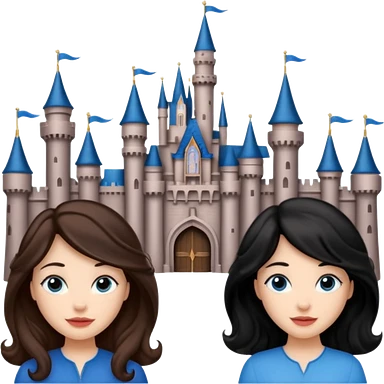 Quiero que crees una imagen donde este el castillo de Disney y por detrás o delante pon a 4 chicas: una con el pelo largo rizado marrón , otra con el pelo muy corto negro, como un chico, otra con el pelo mediano liso marrón con ojos azulesy otra con el pelo negro largo liso . Todos son color carne. emoji
