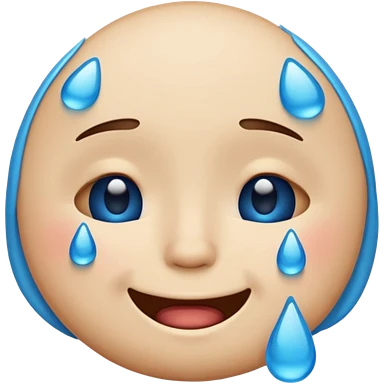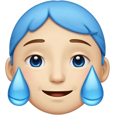 Yellow round emoji with closed eyes and a gentle smile—two wide, bright blue tears flow from under each eye. emoji