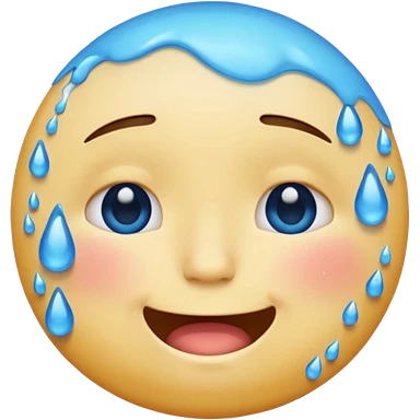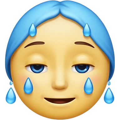 Yellow round emoji with closed eyes and a gentle smile—two wide, bright blue tears flow from under each eye. Glossy, 3D emoji style. emoji