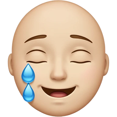 Эмодзи слёзы радости. Жёлтый круглый эмодзи с закрытыми глазами и мягкой улыбкой—из-под каждого глаза текут две широкие, ярко-голубые слезы. Глянцевый, 3D стиль эмодзи emoji