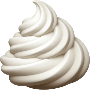 whipped cream, soft airy swirl with delicate peaks, smooth fluffy texture, bright white color, subtle shadows and gentle curves, shape like a freshly piped rosette or dollop, slightly elevated, clean 3D look, soft lighting, no fruit or dessert, no faces, emoji scale emoji