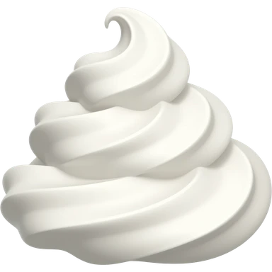 whipped cream, soft airy swirl with delicate peaks, smooth fluffy texture, bright white color, subtle shadows and gentle curves, shape like a freshly piped rosette or dollop, slightly elevated, clean 3D look, soft lighting, no fruit or dessert, no faces, emoji scale emoji