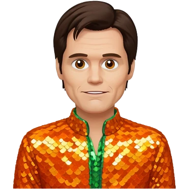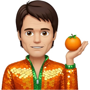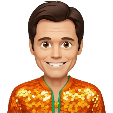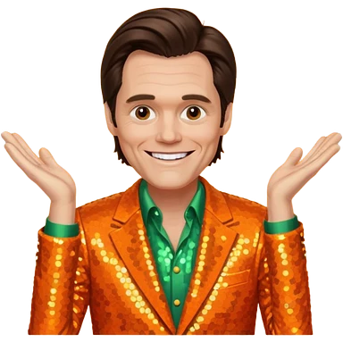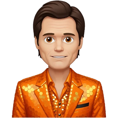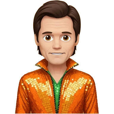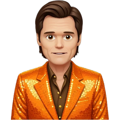 Jim Carrey with dark brown hair, orange sequin suit emoji