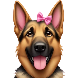 Whit German shepherd with pink bow doing tricks emoji | AI Emoji Generator