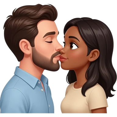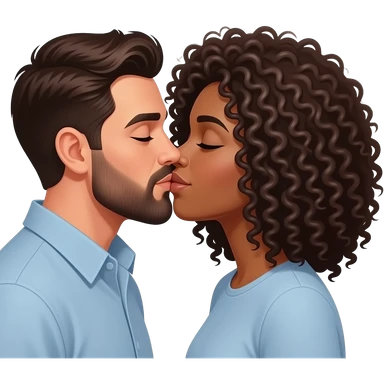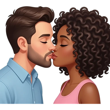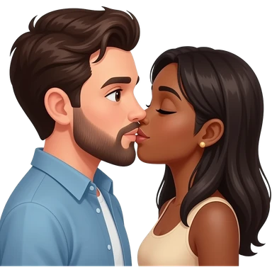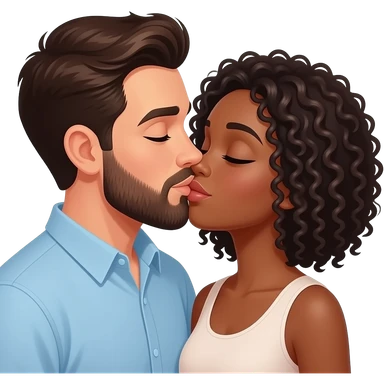 White man with dark brown hair and beard kissing a black woman with curly hair emoji