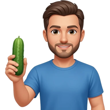 White man with brown hair and a beard holding a cucumber emoji