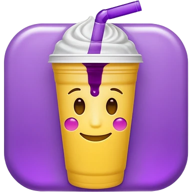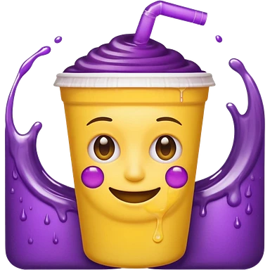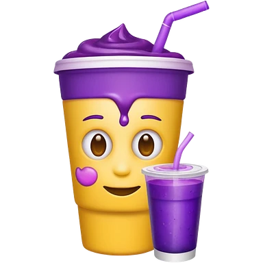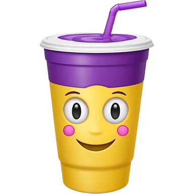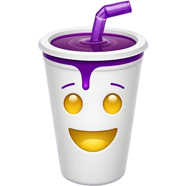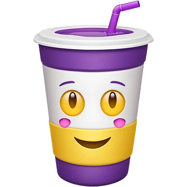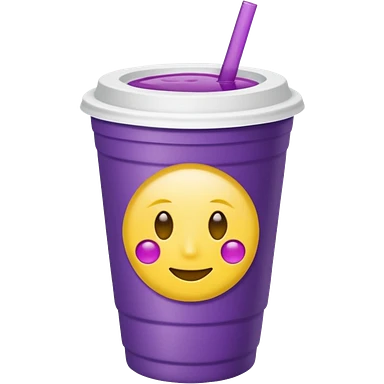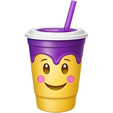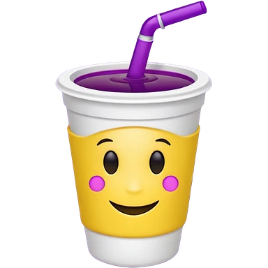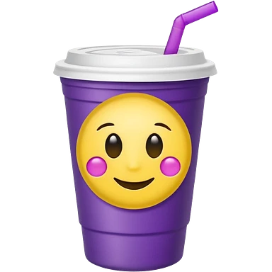 White styro with purple juice inside visible from the top only. Add a yellow emoji face that os holding the cup emoji