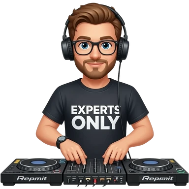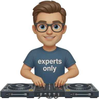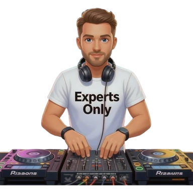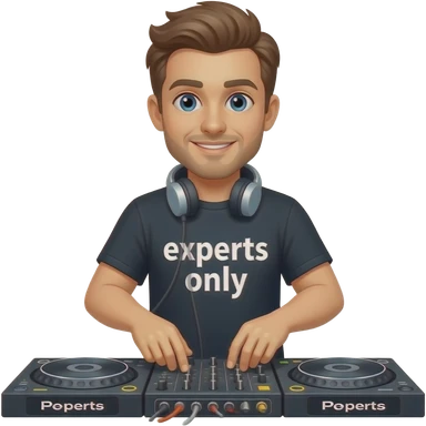 white guy djing festival with shirt that says experts only emoji