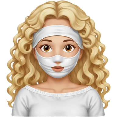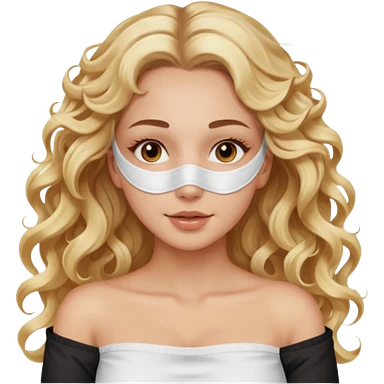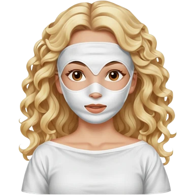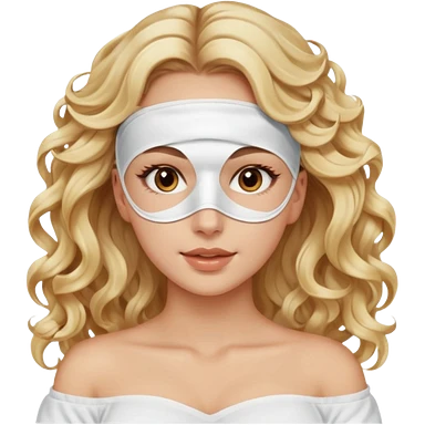 White girl- brown eyes - beauty face mask massage -full care- blonde long curly hair white off shoulder shirt emoji