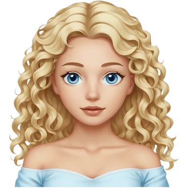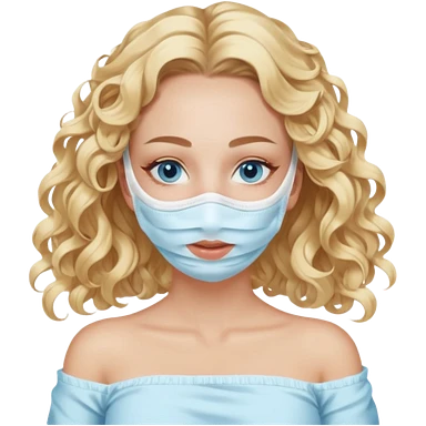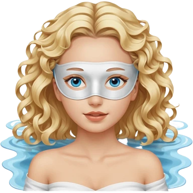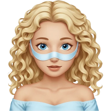 White girl- ocean blue eyes - beauty face mask massage -full care- blonde long curly hair white off shoulder shirt emoji