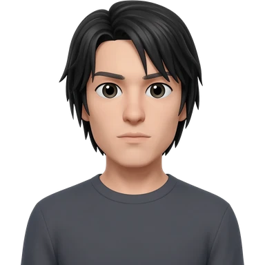 white, male, tall, skinny, slightly long black hair emoji