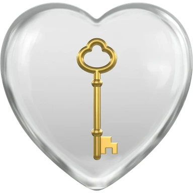 White glass heart with a golden key emoji