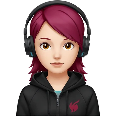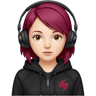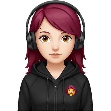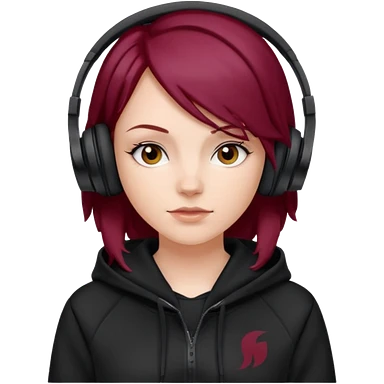white girl with burgundy hair, black deportive hoodie and black headphones emoji