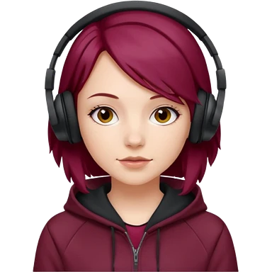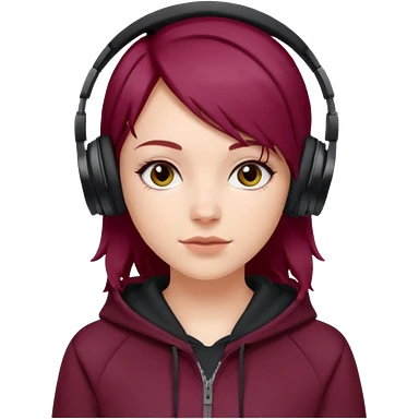 white girl with burgundy hair, deportive hoodie and black headphones emoji