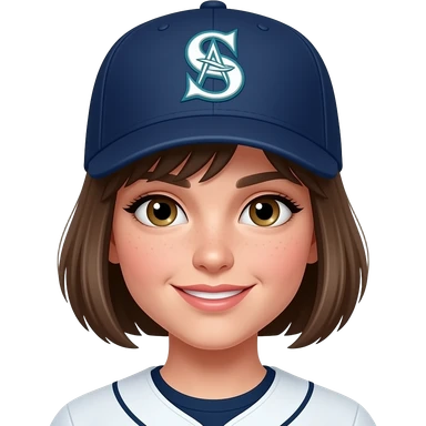 white girl, short hair, seattle mariners baseball cap emoji