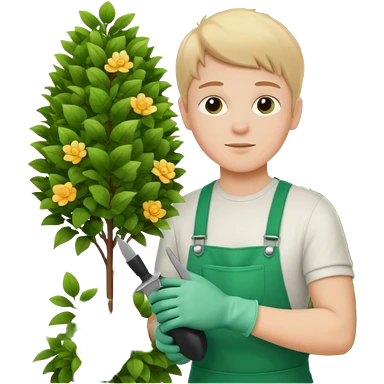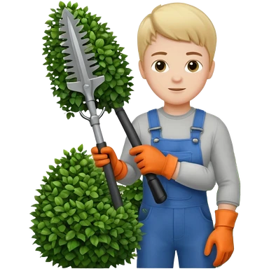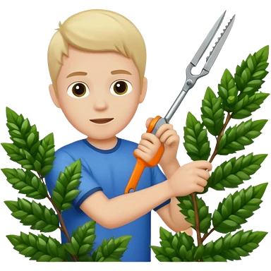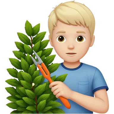 white kid trimming a decorative bush emoji