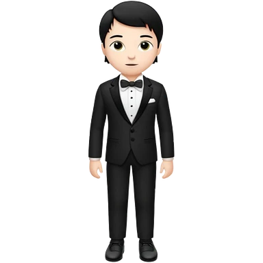 white boy with black hair in a tuxedo. full body emoji