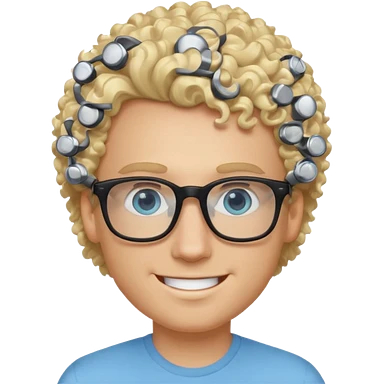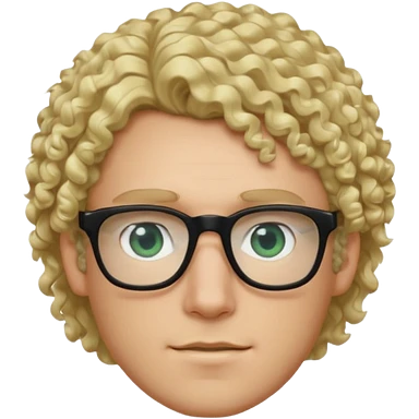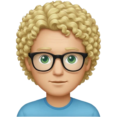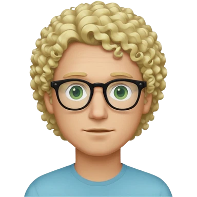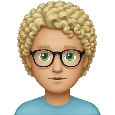 white guy with curly blonde hair and light blue ish green eyes with black glasses emoji