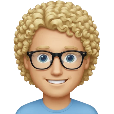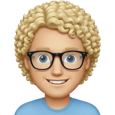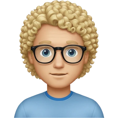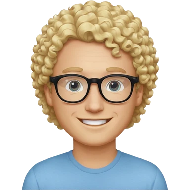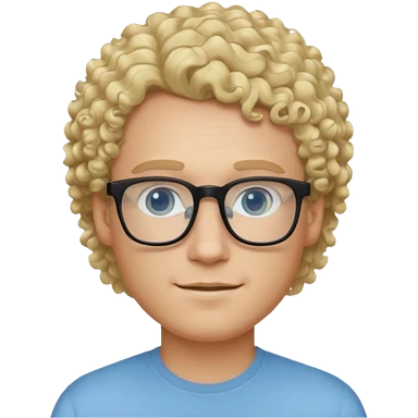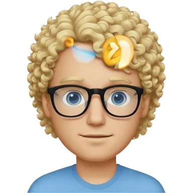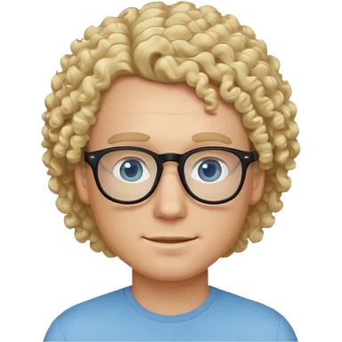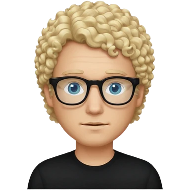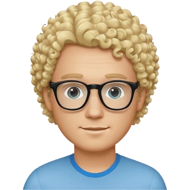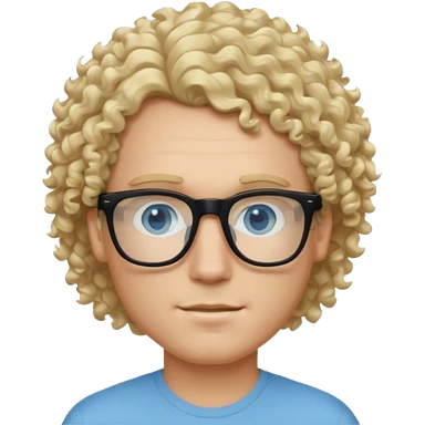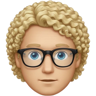 white guy with curly blonde hair and light blue ish eyes with black glasses emoji