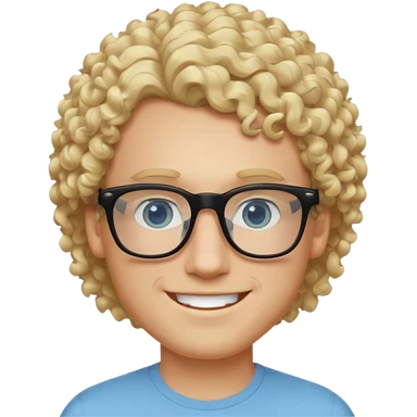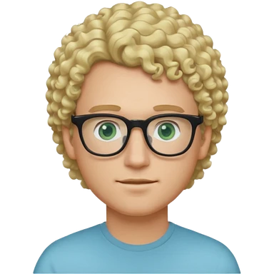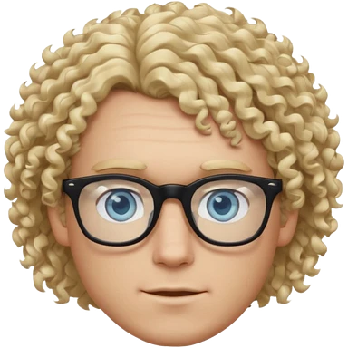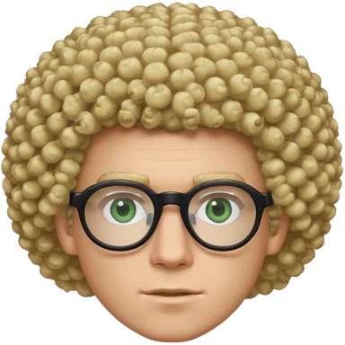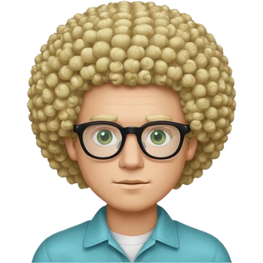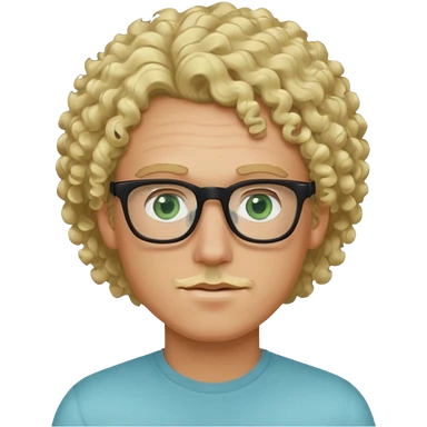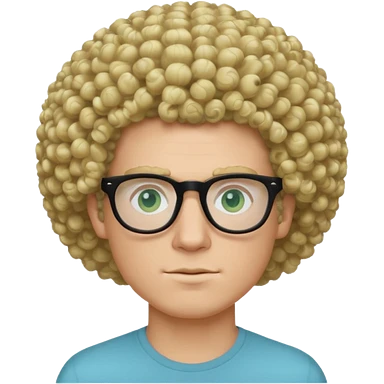 white guy with curly blonde afro and light blue ish green eyes with black glasses emoji