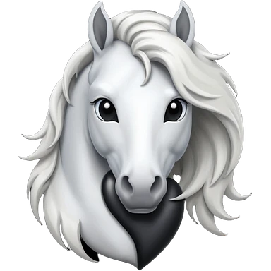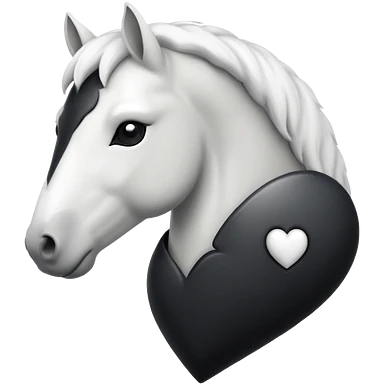 White Horse centered within a black heart emoji emoji