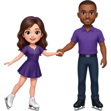 white skin brown haired girl ice skating with a brown guy with a shaved head emoji