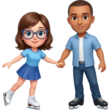white skin brown haired girl with glasses ice skating with a tan guy with a shaved head emoji