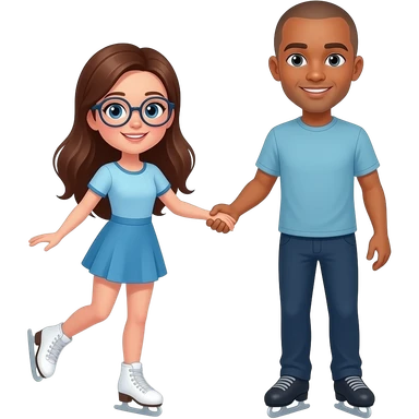 white skin brown long haired girl with glasses ice skating with a tan guy with a shaved head emoji