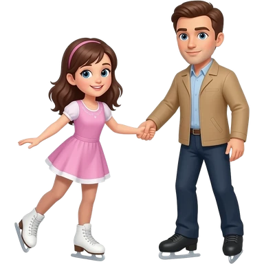 white skin brown haired girl ice skating with a light brown guy with an almost shaved head emoji