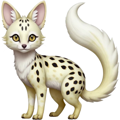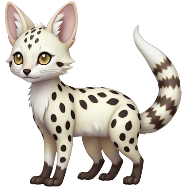 White Albino light whitish grey-spotted Serval-Civet-Genet-Trico-Furret-Linoone-Noibat-Espeon-Fakémon-Pokémon-animal-hybrid-fusion-creature (full body) with vibrant glowing eyes, cute, elegant, soft, realistic, pastel fur emoji | AI Emoji Generator