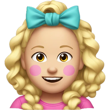 JoJo Tickle (Jojo's circus) female clown white skin, clown red nose, red hair, short hair, blue barret with covered red pompom, yellow shirt with covered paint splatters purple and blue pattern, red pants with orange stripes and white red big shoes emoji