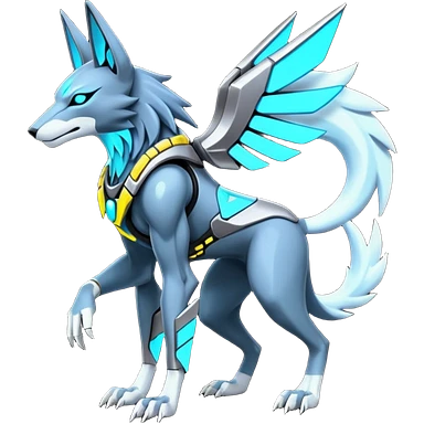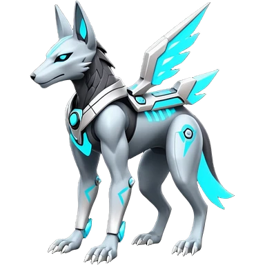 White and blue and cyan and red cyberpunk intricate neon glowing grey white futuristic cyborg-Anubis-Zeraora-Zoroark-fusion (full body)emoji