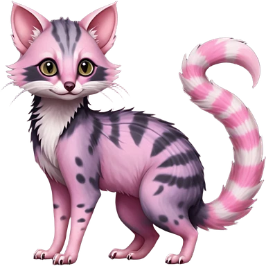 White and blue and red Asian painted anime-styled big-eyed shiny glorious divine marked exotic cool beautiful realistic Lykoi-civet-genet-sergal-oncilla-animal-Fakémon-hybrid-fursona (full body) emoji | AI Emoji Generator