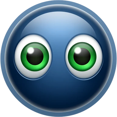 Dark blue ball with display showing green eyes emoji