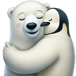 White and black bear hugging each other emoji